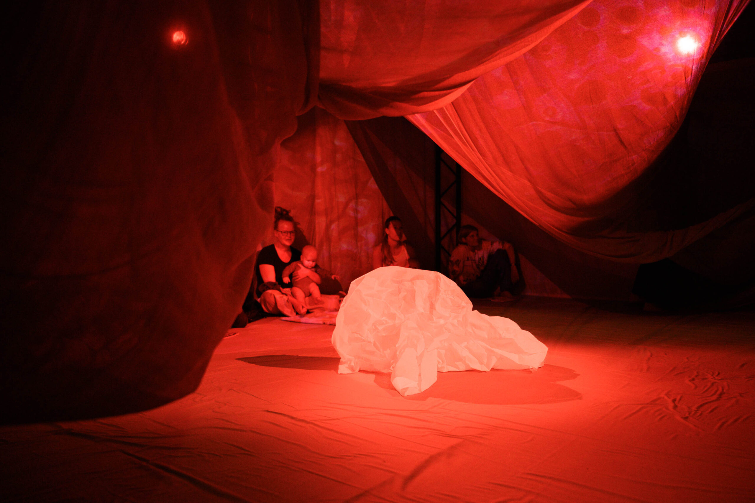En koreograferet installationsforestilling for det alleryngste publikum på 0 – 15 mdr. og deres voksne.